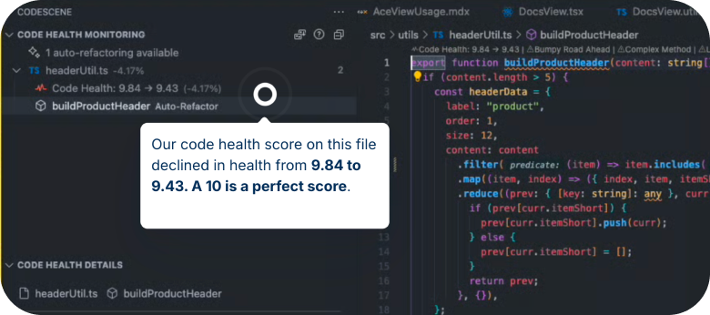 Purpose: Get real-time IDE feedback and a Code Health Monitor feature that flags code health issues early, ensuring clean commits every time.